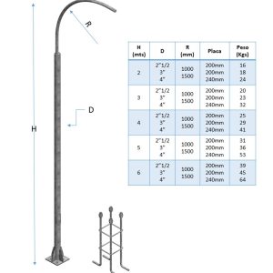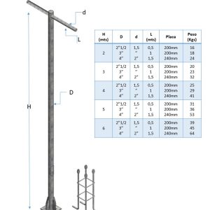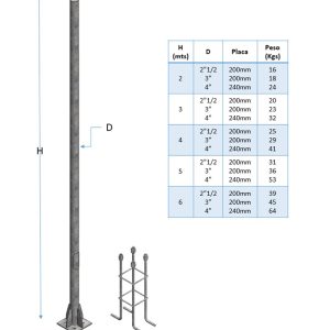 Poste Tubular Metálico 1 tramo 2 ganchos