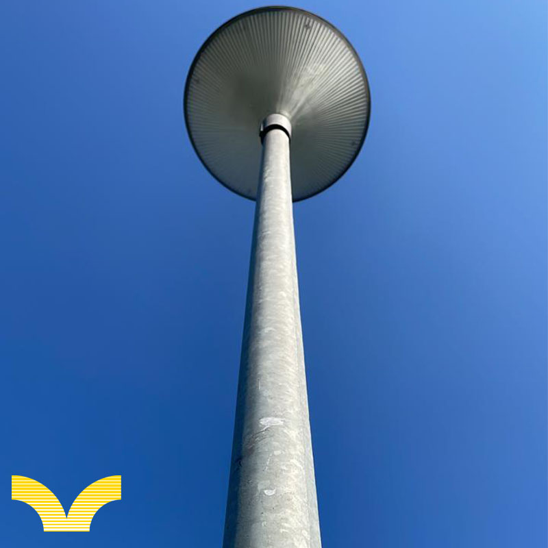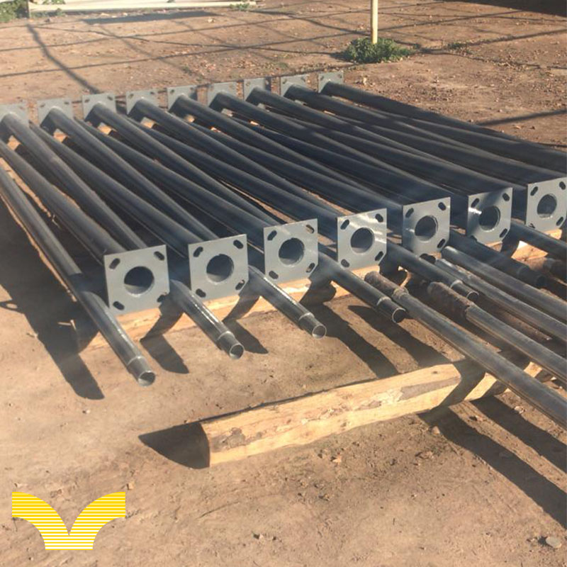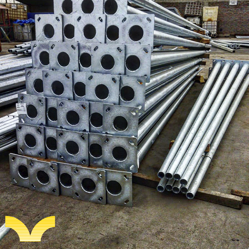Cónico metálico en acero Galvanizado desde 2 mts a 15 mts, elaborados en acero SS400, Acero en Placa A-36, Pernos Acero SAE 1020; armados en negro con Soldadura al Arco Sumergida longitudinal sin uniones transversales, con conicidad constante.