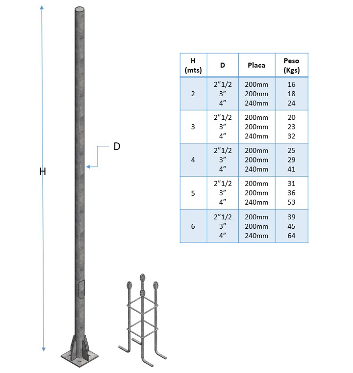 Poste Tubular Metálico 1 tramo